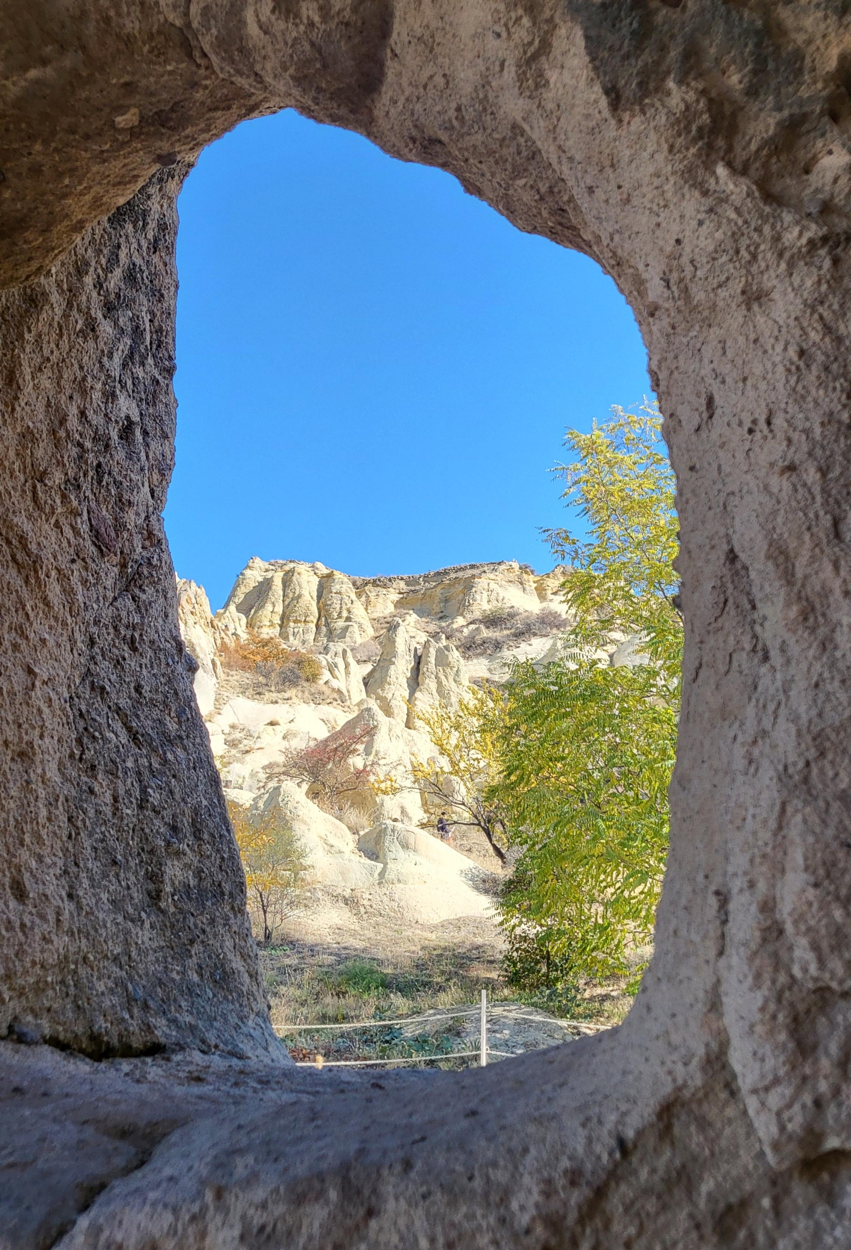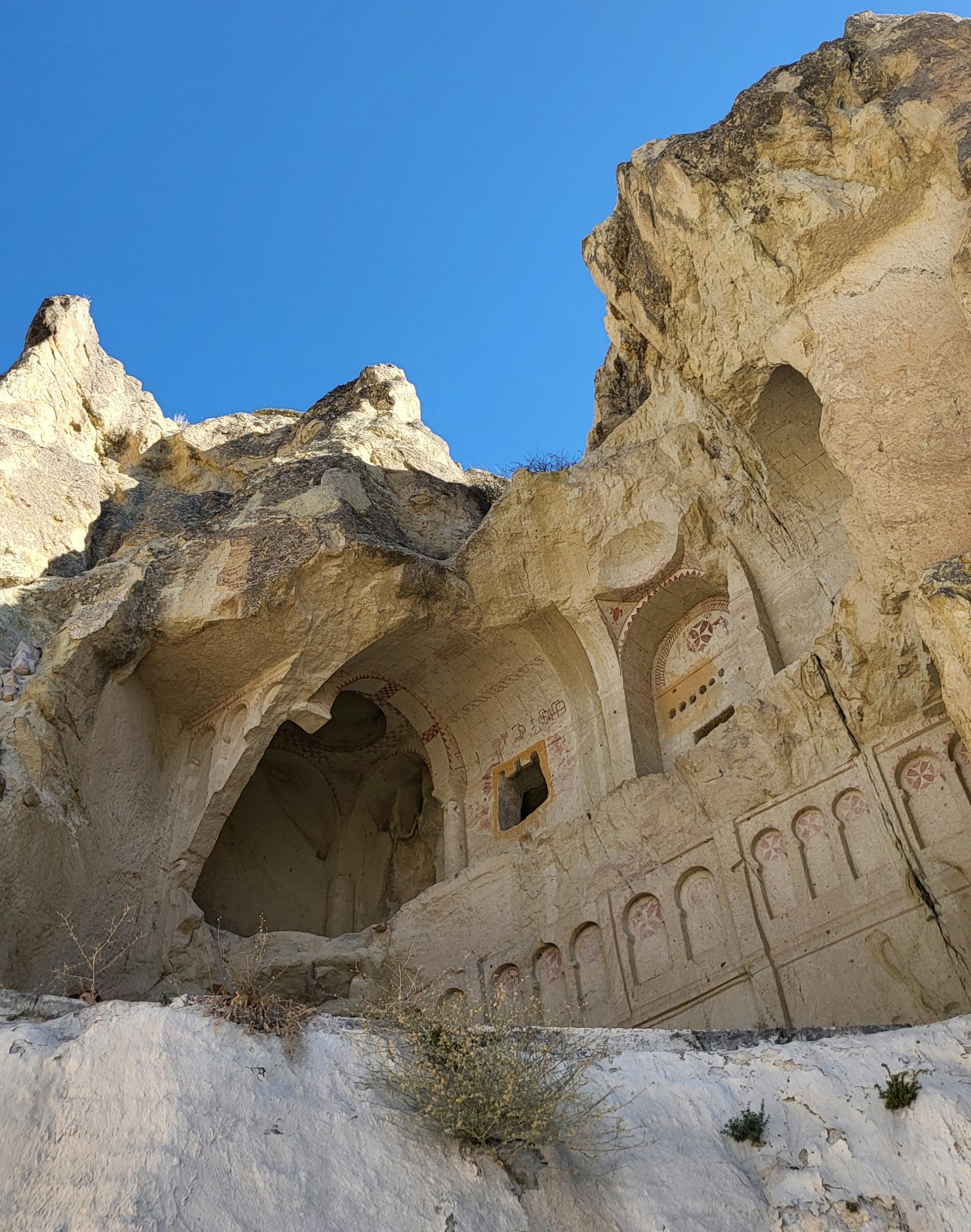 [260만 년 전 에르지에스 산(Mount Erciyes) 폭발로 응회암과 현무암 층이 그 위를 덮은 뒤 풍화와 침식 작용이 오랜 시간 반복되며 현재의 기암괴석들이 만들어진 카 파도키아 지역에 로마 시대의 기독교인들이 박해를 피해 숨어 살며 응회암 재질의 부드 러운 동굴을 파 교회를 만들고 그 암굴 교회 안에 성화들을 그렸는데, 오늘날까지 고스 란히 잘 남아 있어 1985년 유네스코 세계복 합유산으로 지정된 장소이다.