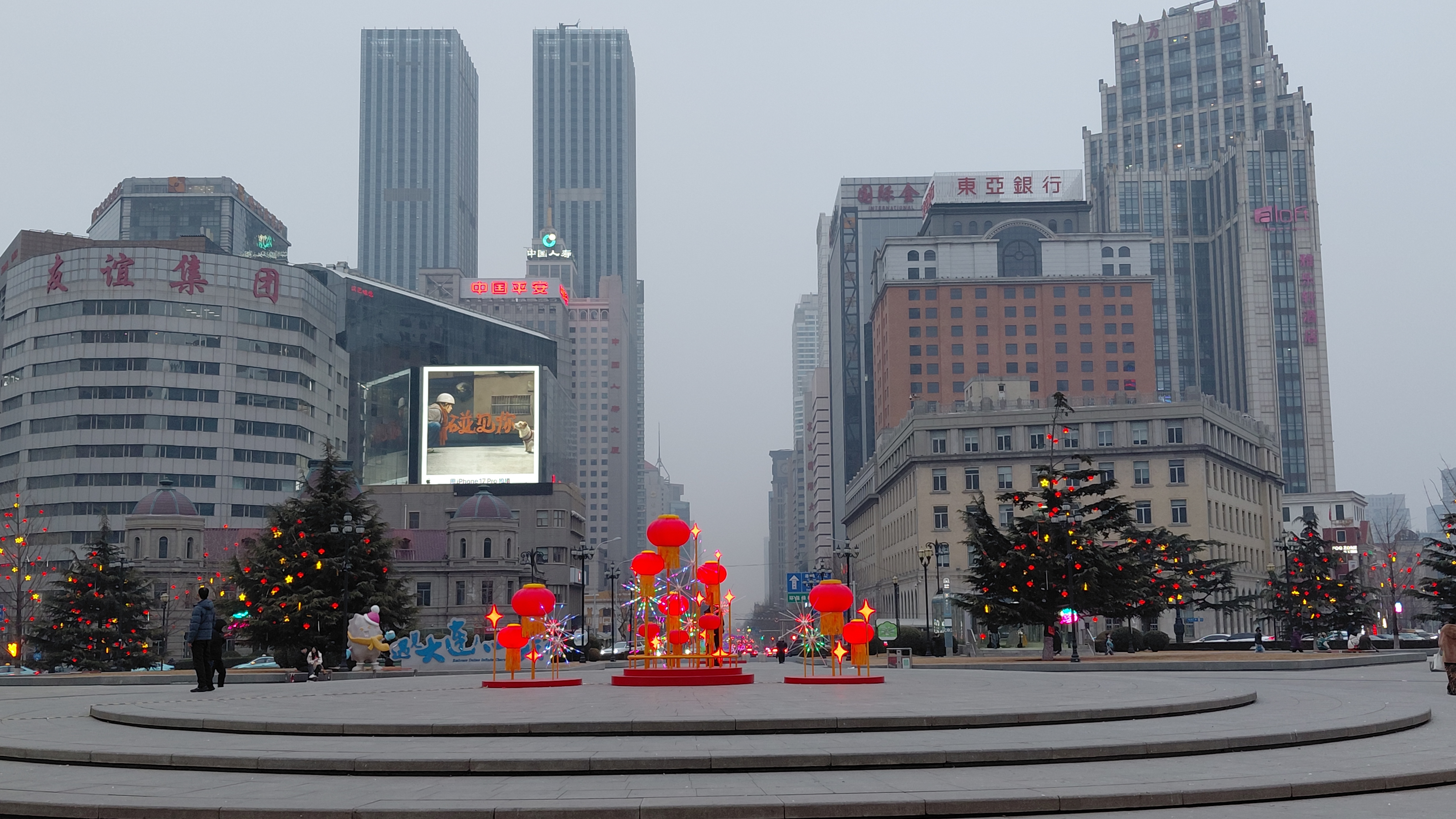 대련거리에 많은 쇼핑건물들이 있다.