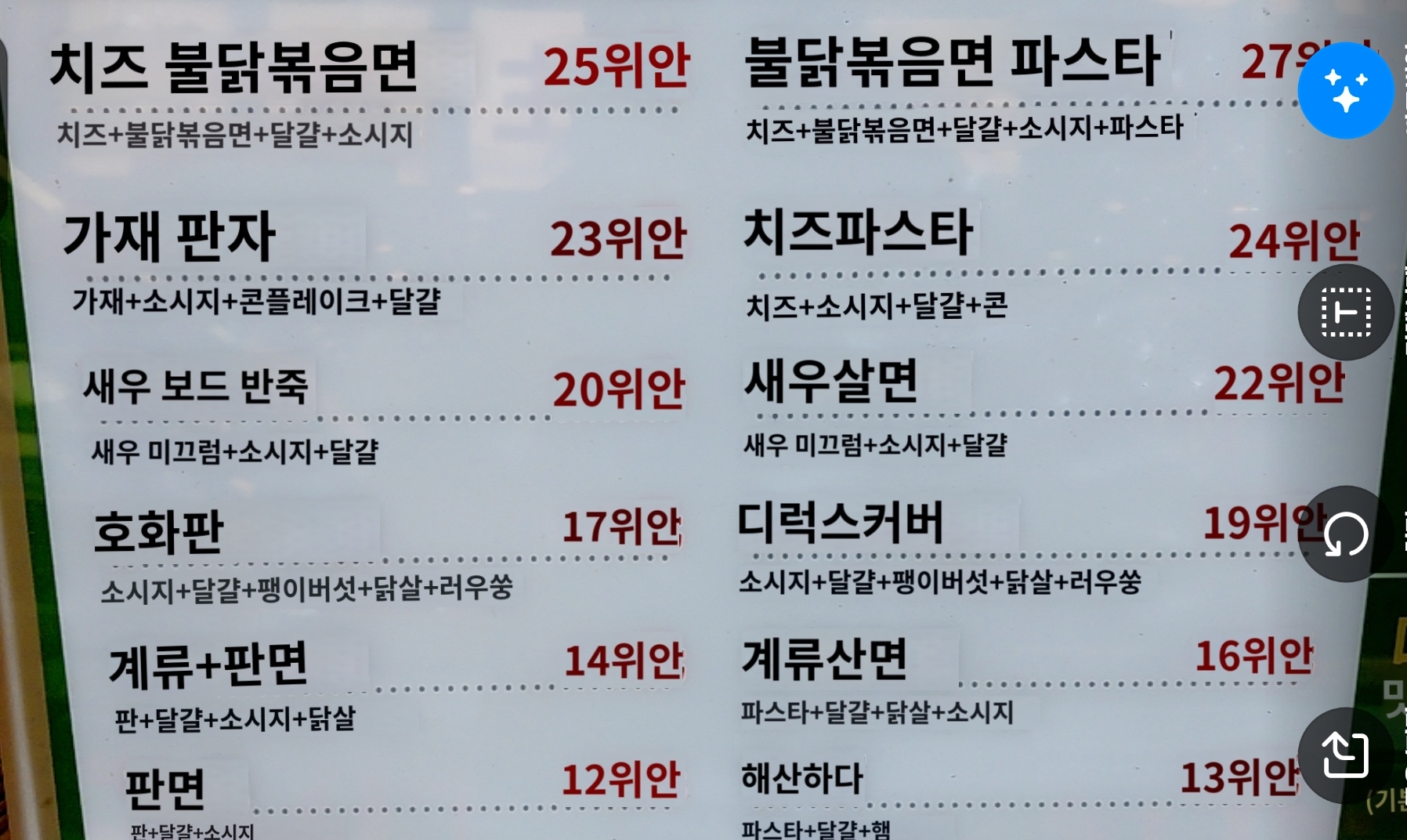 많은 종류의 음식들이 있지만 향신료 걱정에 쉽사리 고르지 못하겠다.