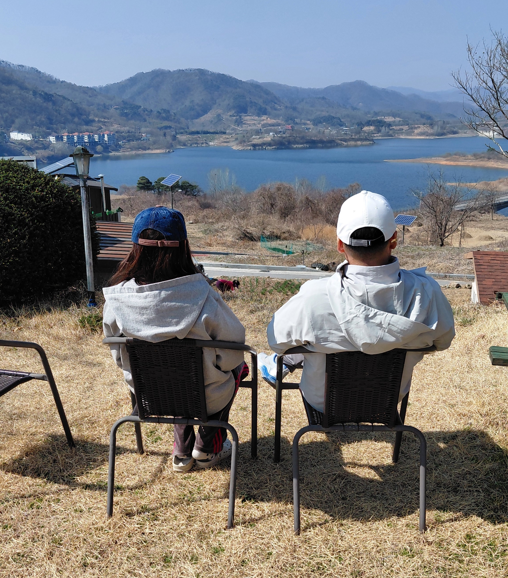 식사후 옥정호 바라보며 일광욕하는 유씨 부녀~~