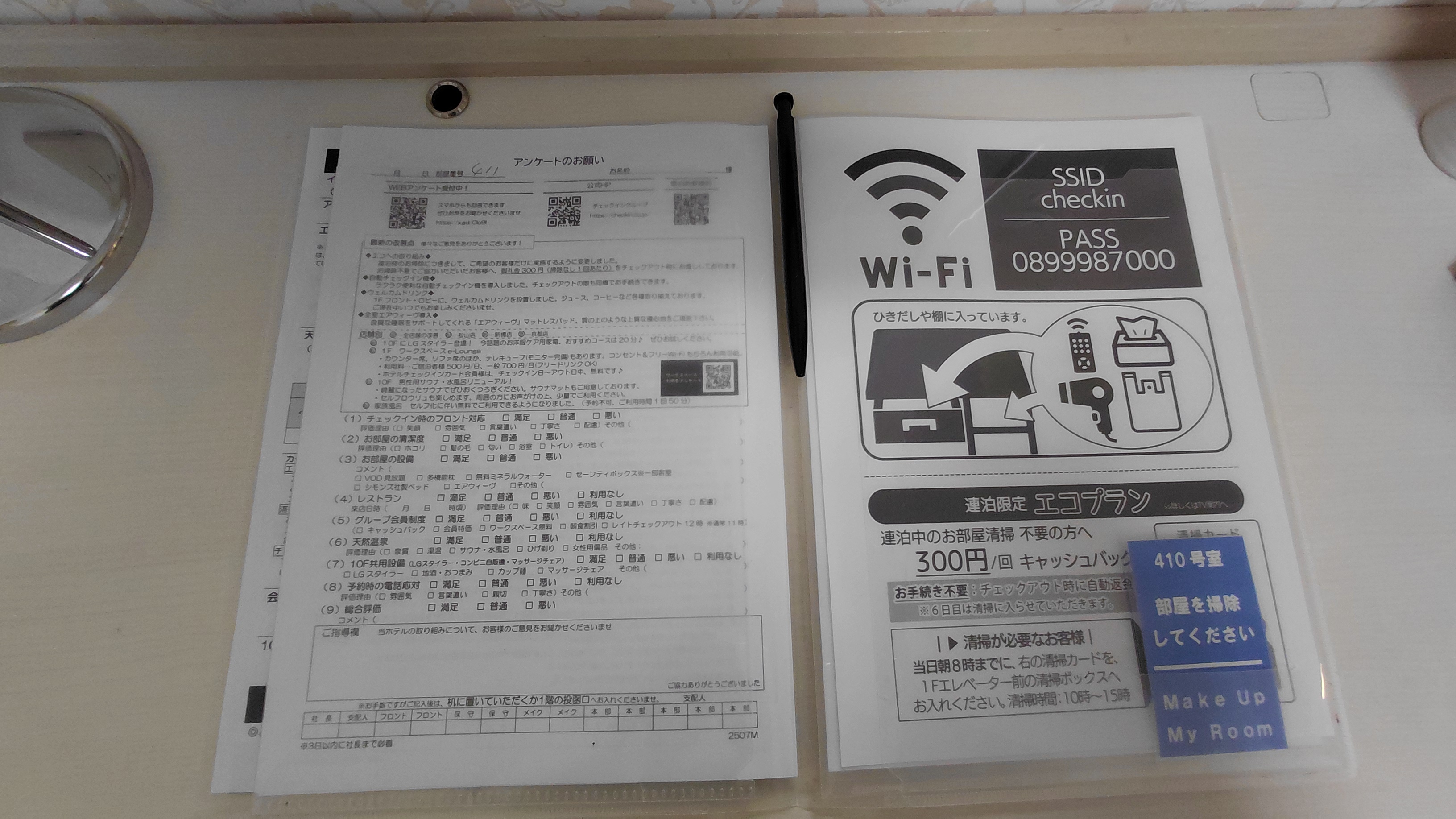 제공된 안내서를 보니 청소를 하지 않으면 하루에 300엔씩 환급해준단다.