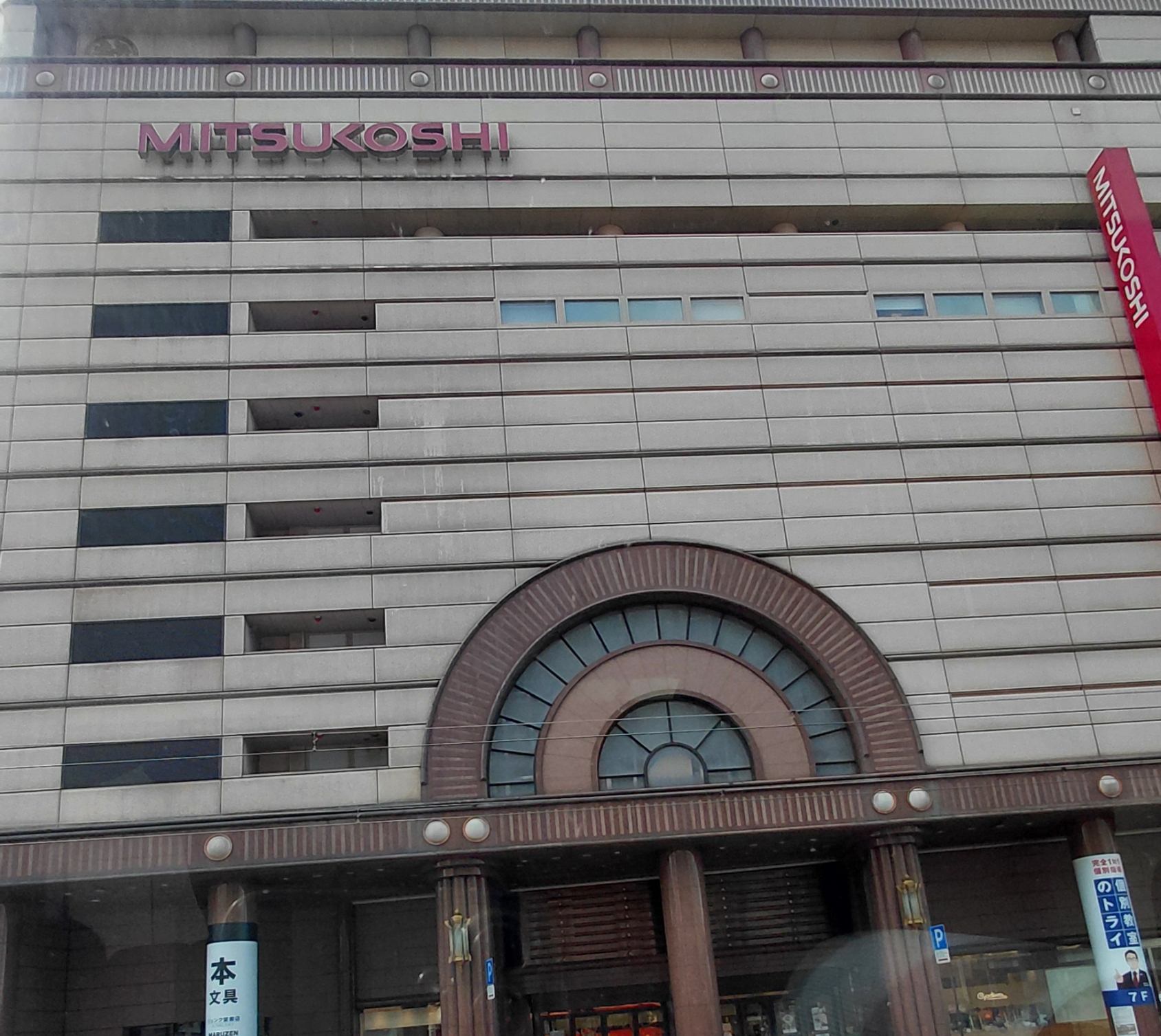 무료 셔틀버스를 타고 오카이도에서 하차하면 정면에 미츠코시백화점이 보인다.