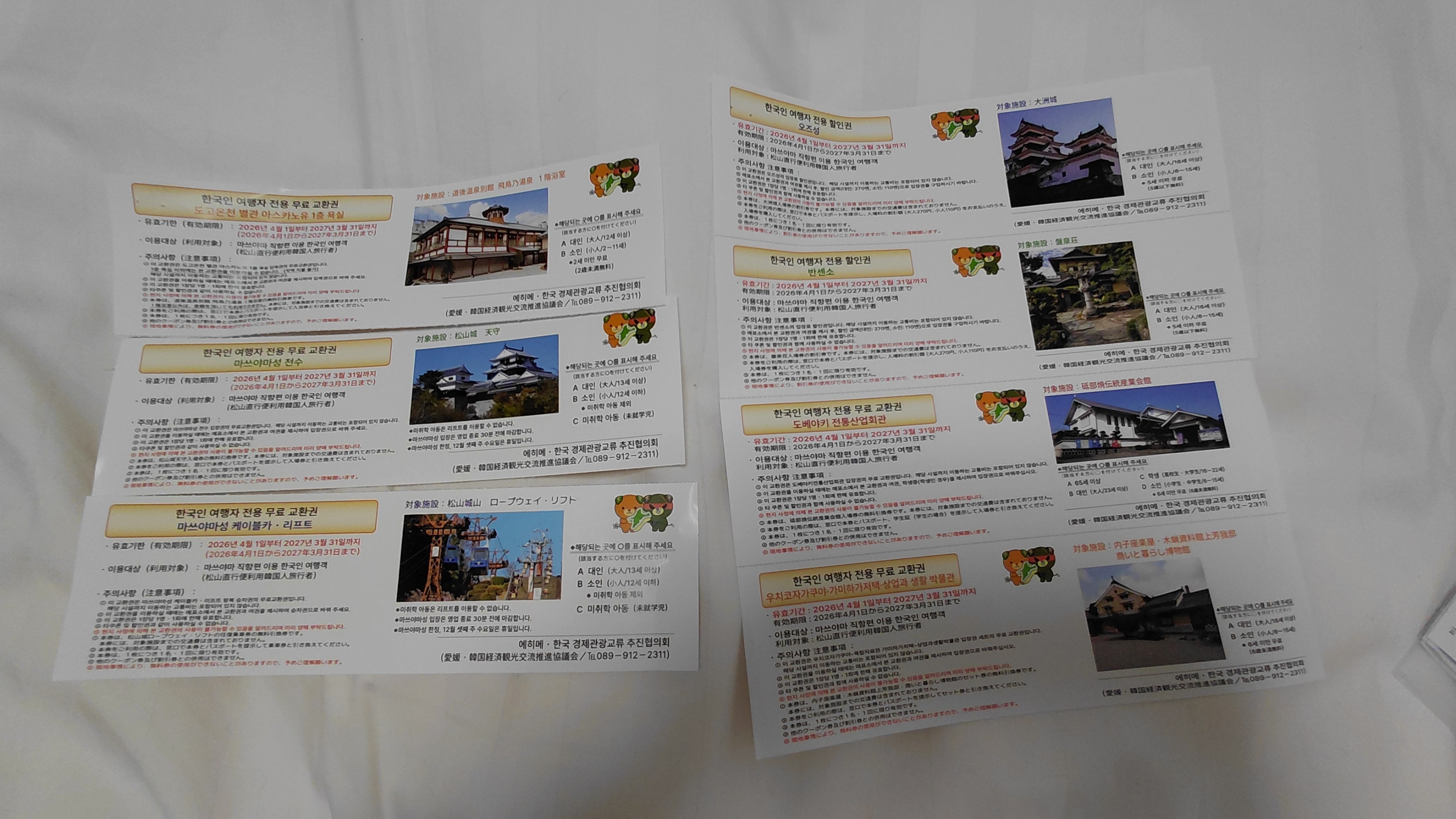 마쓰야마 여행 필수 관광지 입장권들이라 유용하게 사용하고있다.