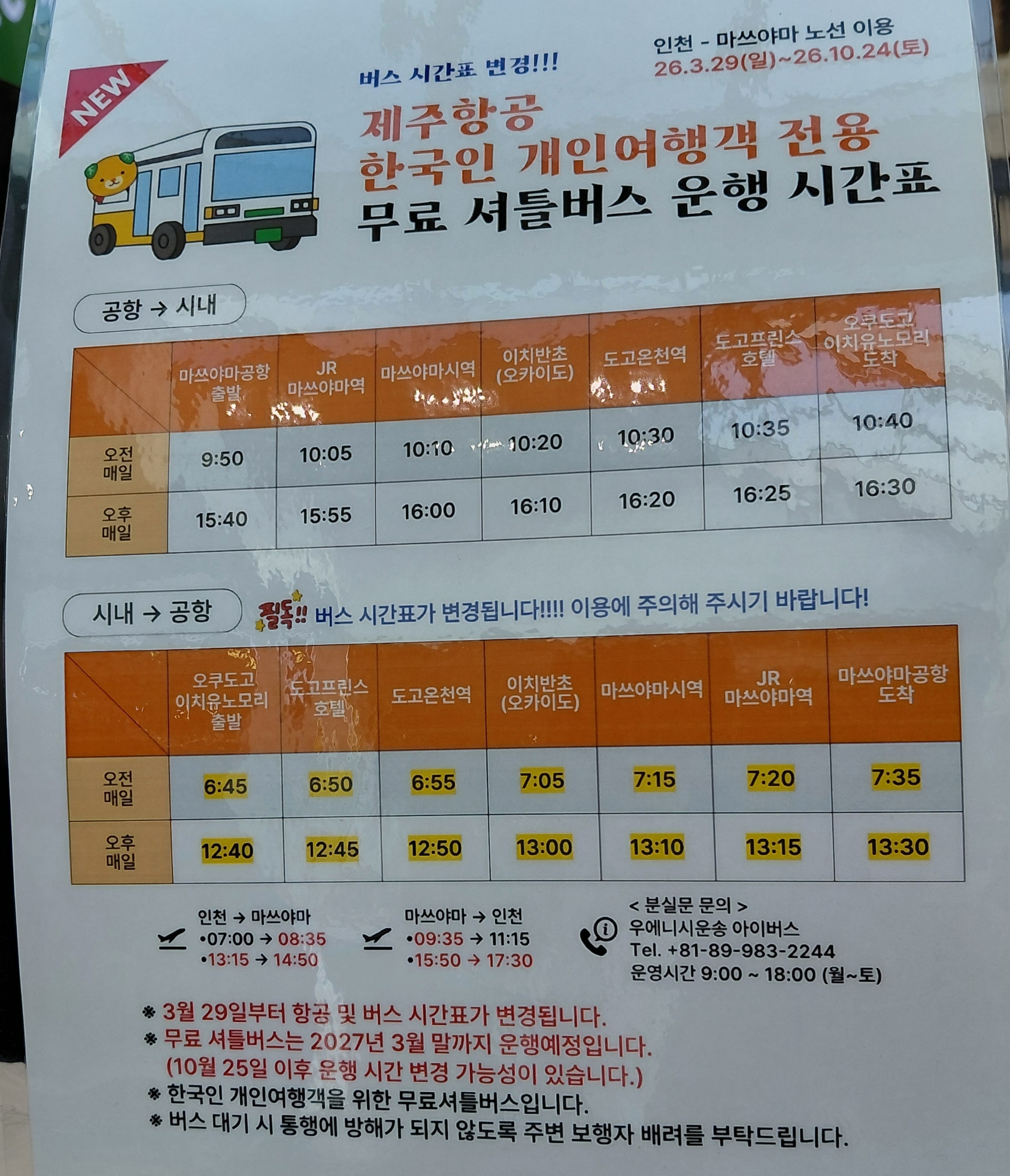 공항가는 무료셔틀버스는 반대편 미츠코시 백화점앞 정류장에서 탑승하면된다.