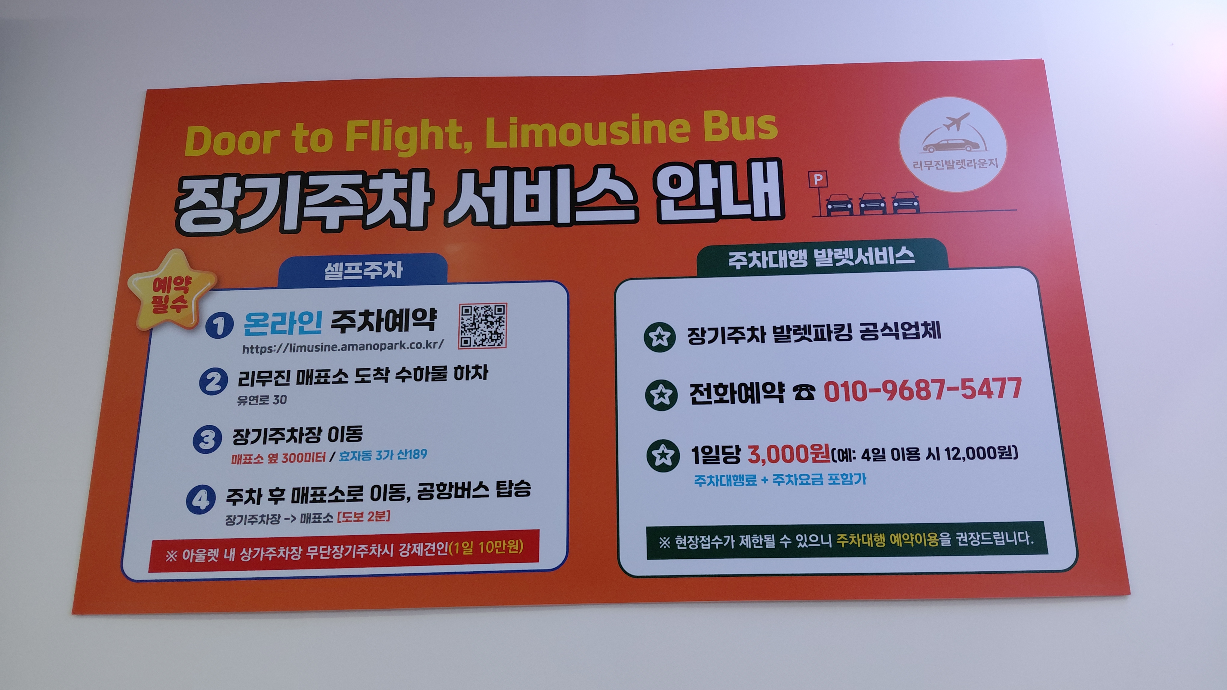 발렛파킹은 일일 3,000원이다.